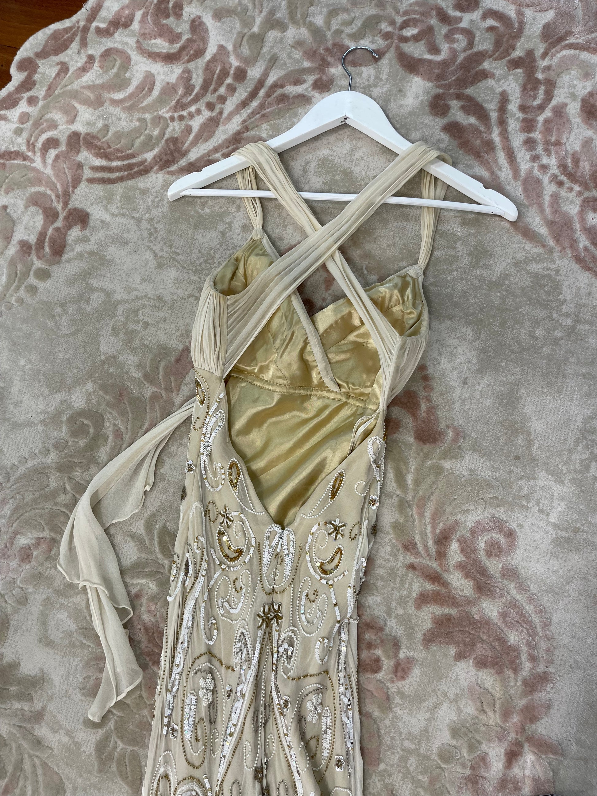 Rare Vintage 90's 100% Silk Beaded Gown